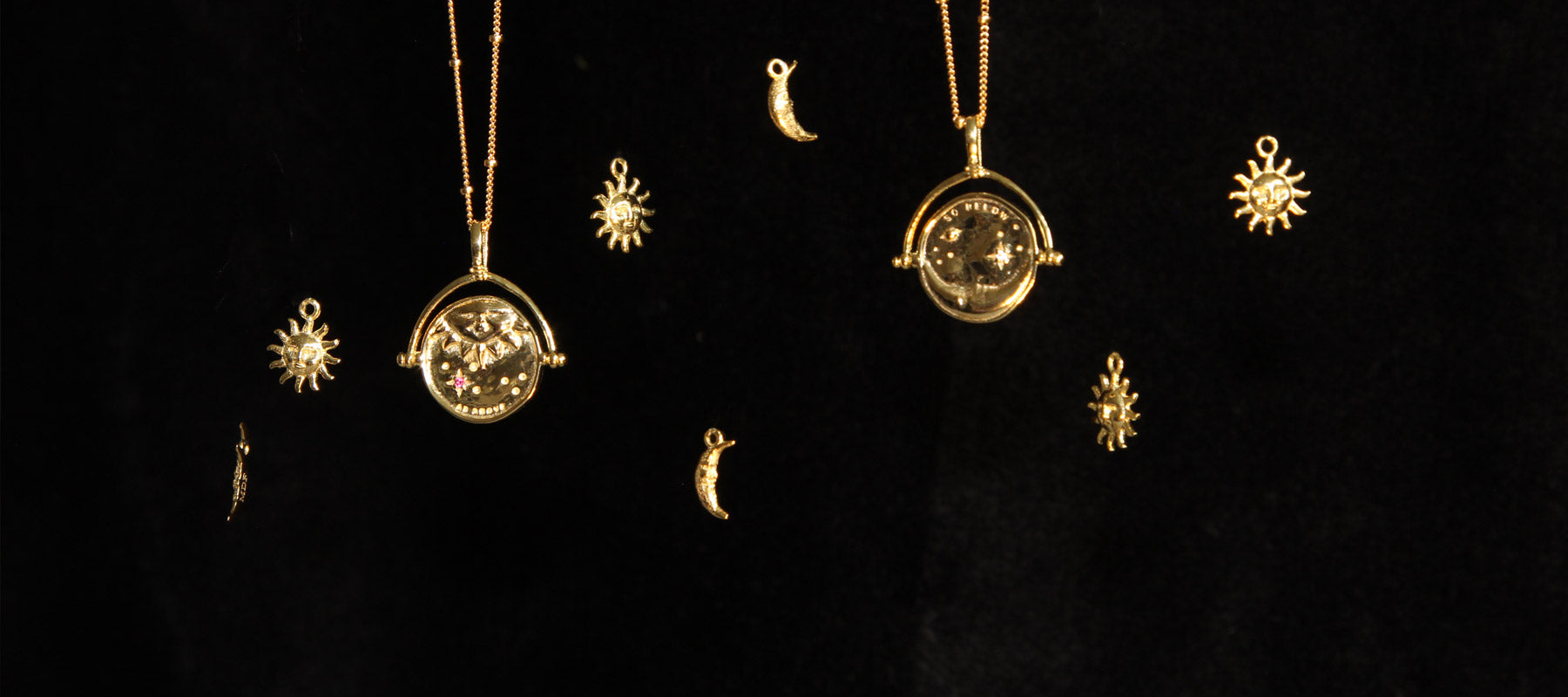 Dreamy, celestial designs for the cosmic woman. Create your own amulet for every day with our range of stars, moons, smiling suns, evil eye talismans, cosmic bees & butterflies, and mix and match earrings.