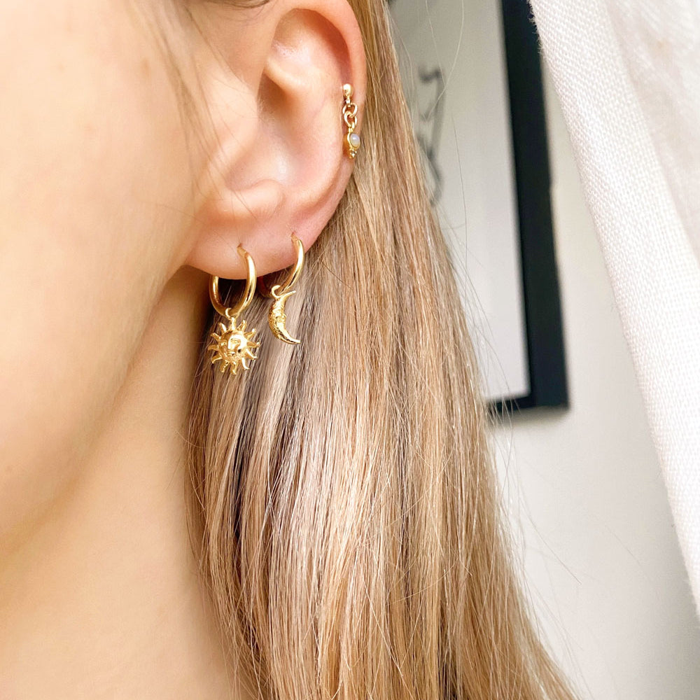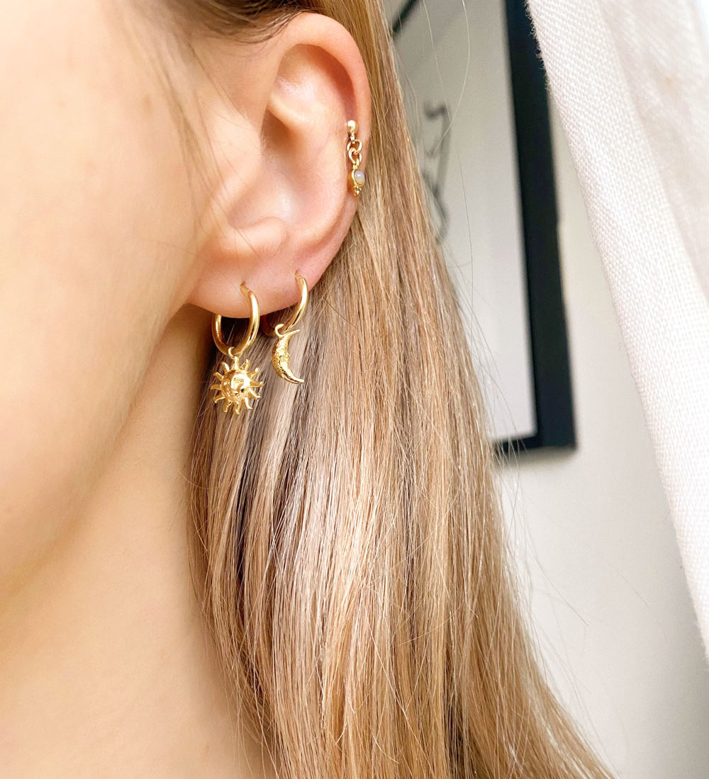 Our best selling sun and moon hoops are back. Dreamy, cosmic nostalgia vibes for every single day (and night).