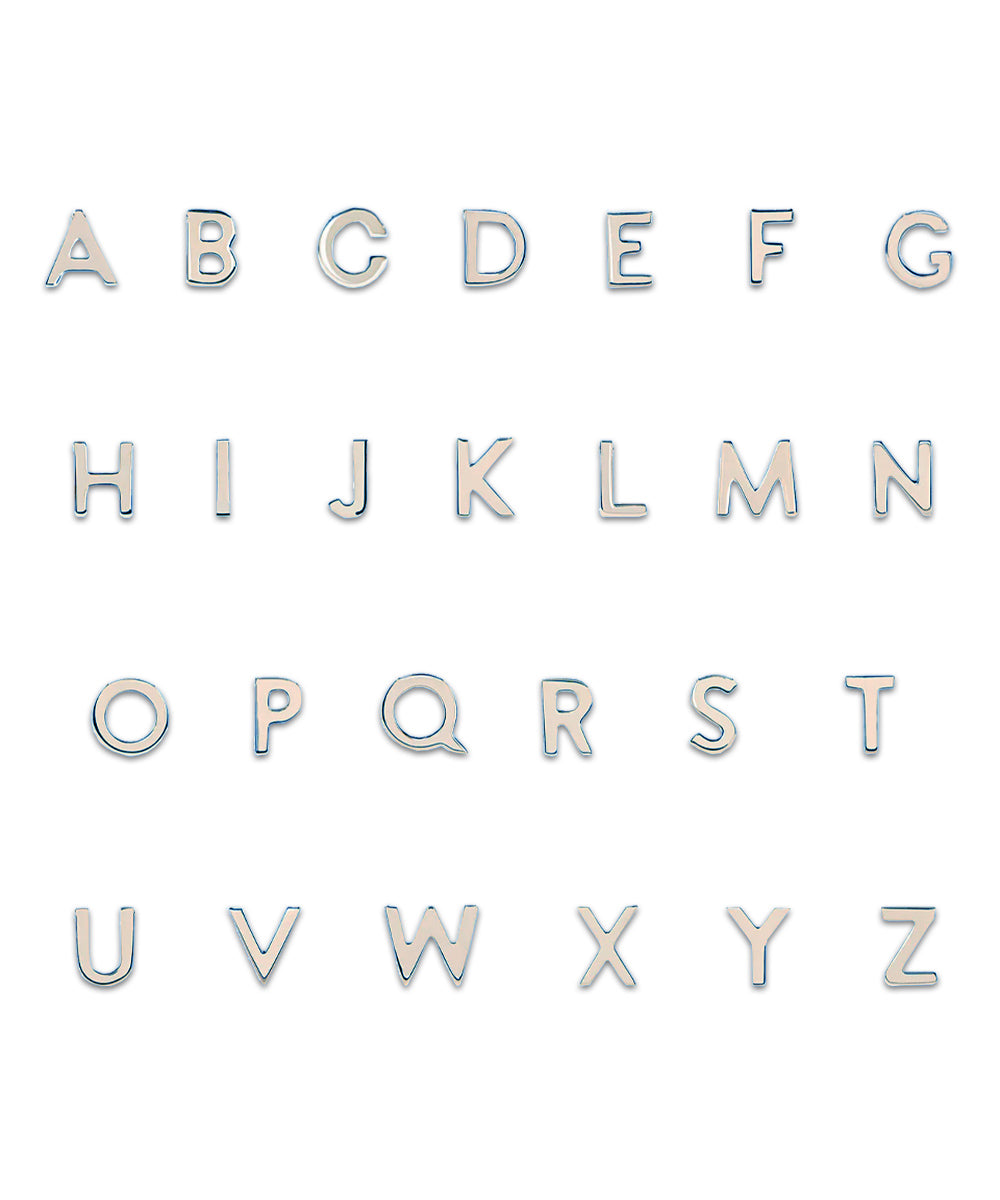 • Initial charms vary in size but average 4mm wide and 6mm tall.