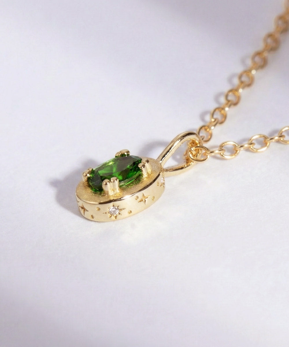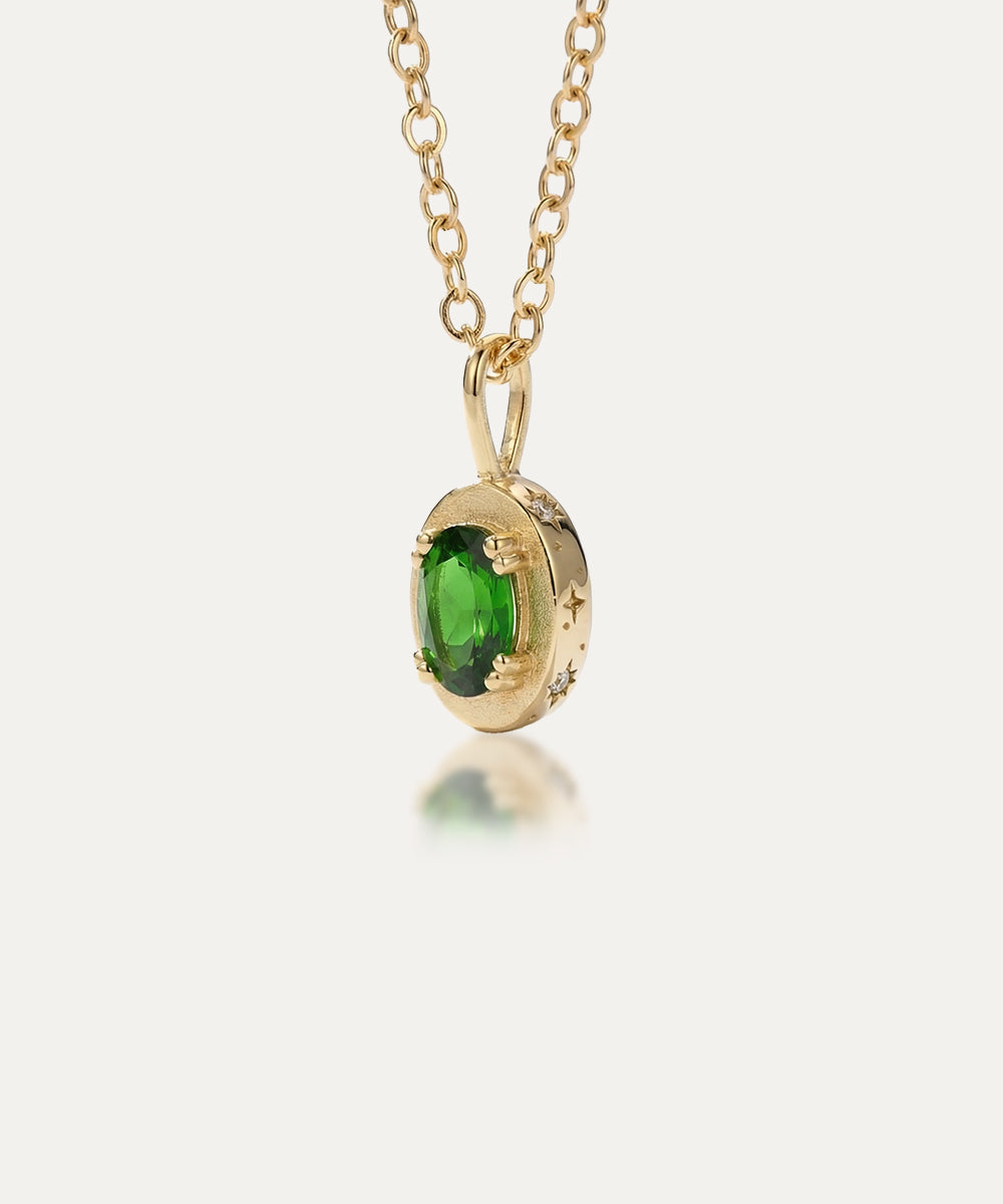 Maison de Femmes May Emerald Birthstone Pendant with cosmic sides.