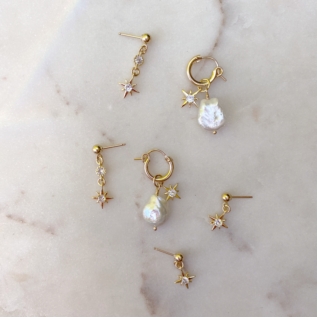Dreamy, celestial designs for the cosmic woman. Create your own amulet for every day with our range of stars, moons, smiling suns, evil eye talismans, cosmic bees & butterflies, and mix and match earrings.