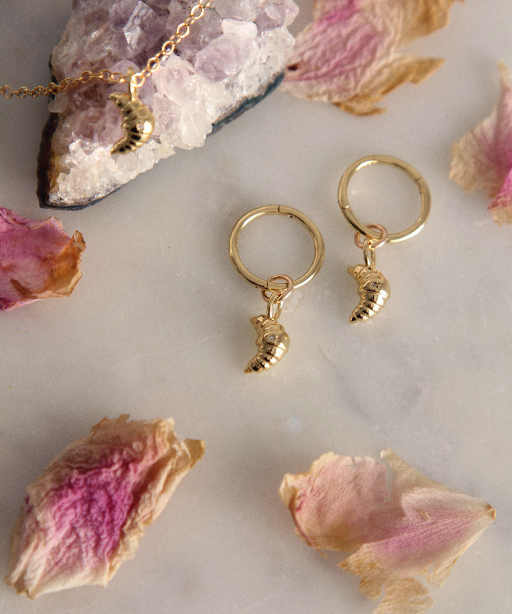 Delicious, flaky, French treats! Feel like a true Parisian with our iconic tiny croissant charm. Featuring a star-set CZ stone and extra detailing around the flaky rolls, this gorgeous croissant charm is available as hoops, a necklace or to mix and match in our Choose Your Own Adventure collection! Made from 14K gold vermeil to last.