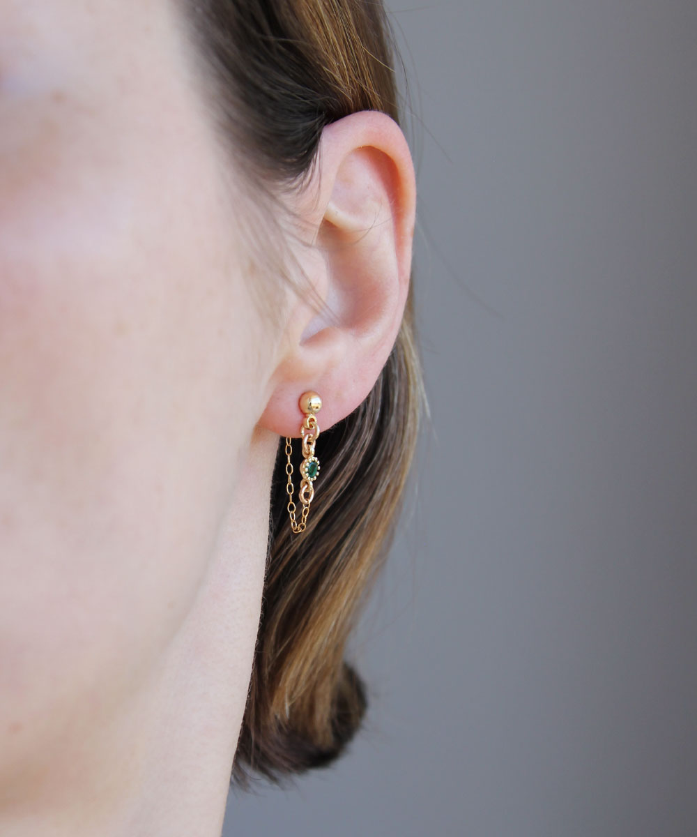 Named after one of my favourite Fleetwood Mac songs, The Chain Earrings feature a green CZ charm with a dainty chain connected to the butterfly back.