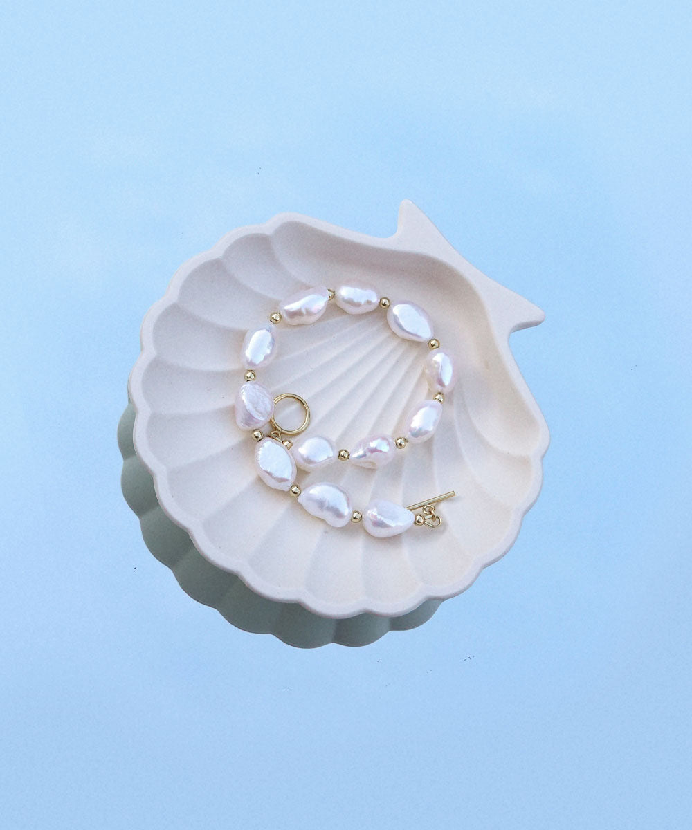 A bold freshwater pearl bracelet that's perfect for your next tropical vacation (or night out—whichever comes first!) Handmade using gorgeous freshwater pearls and gold filled beads and toggle, it pairs beautifully with the matching Paradiso Freshwater Pearl Necklace.