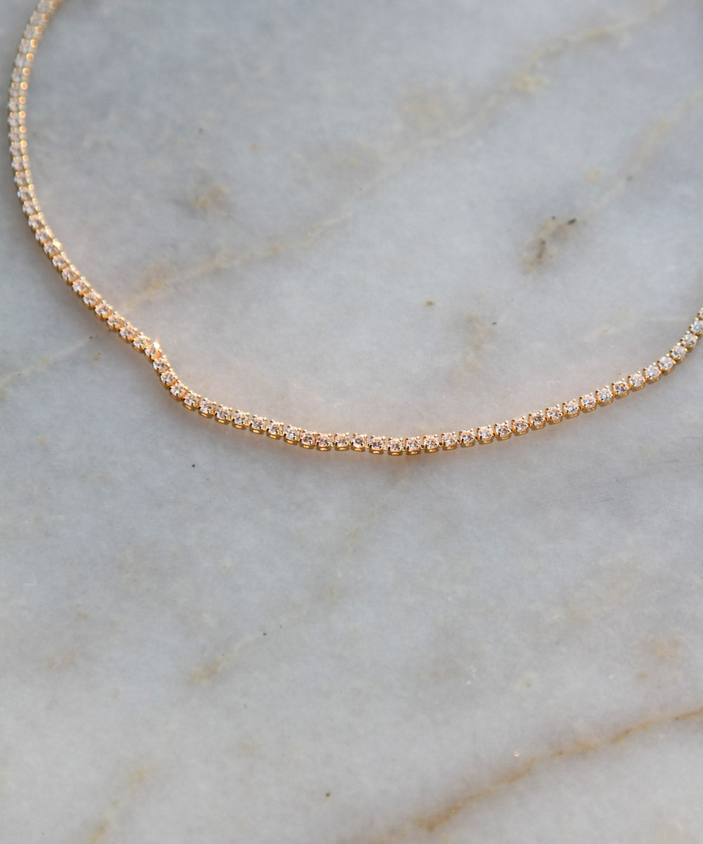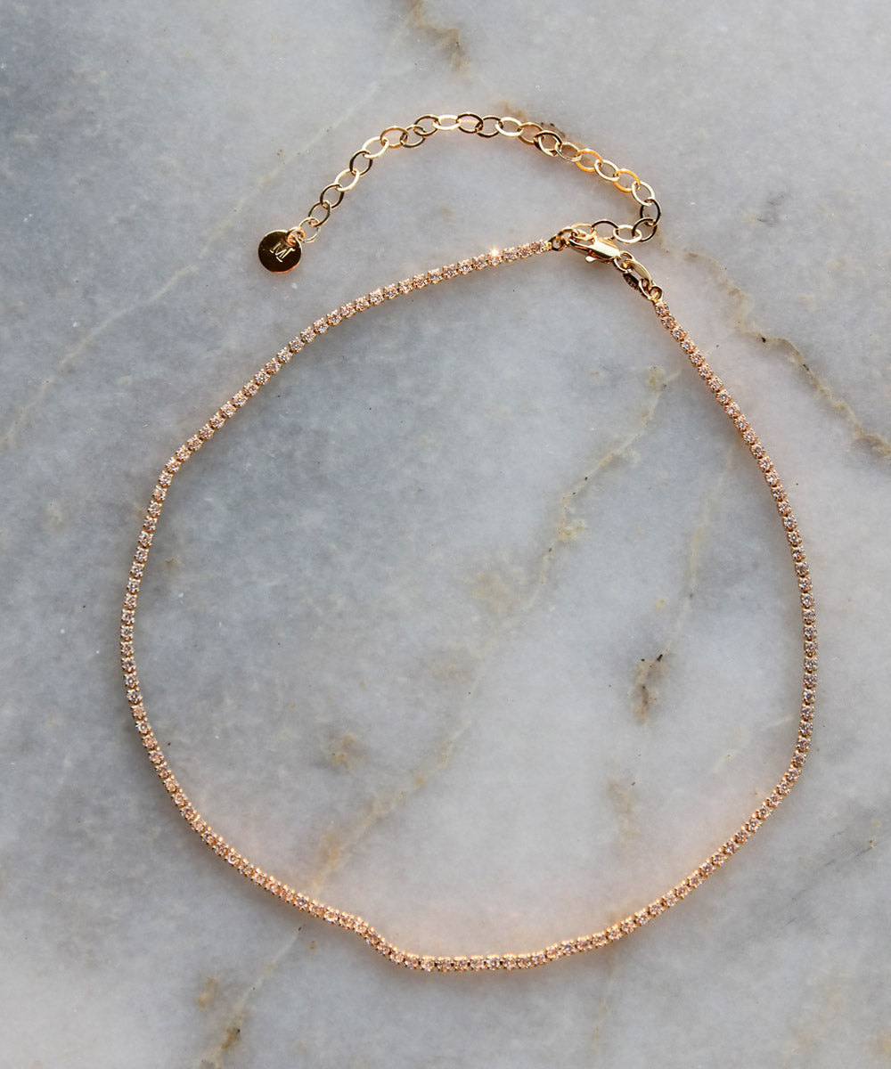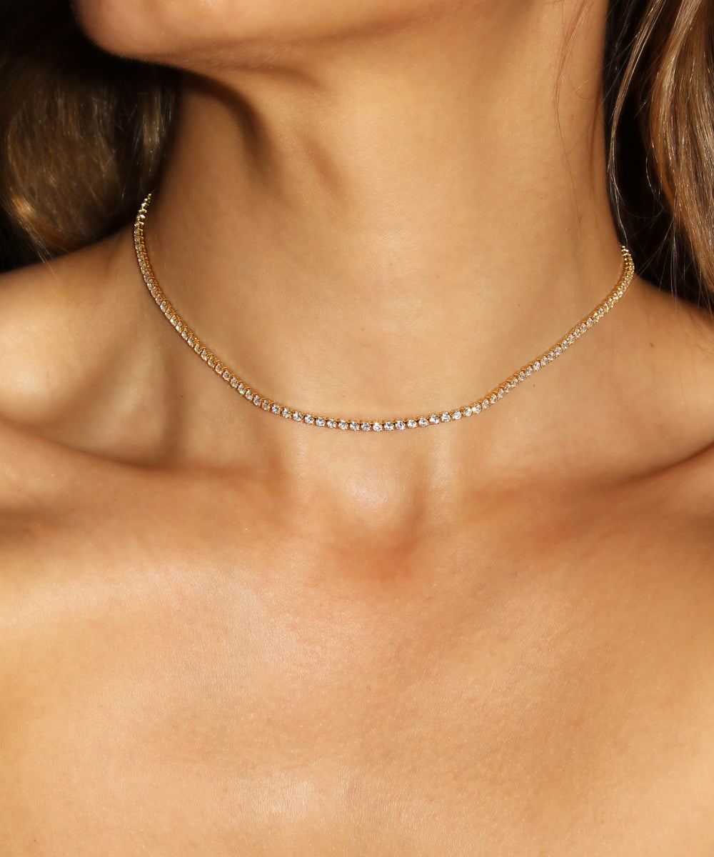 It's giving 'old money' and quiet luxury. A modern classic, the Tennis Choker Necklace is the bold pop of sparkle that elevates any outfit. Cute top and jeans? Tennis Choker. Wedding guest? Tennis Choker. You can never be overdressed, and with this divine, glittering necklace, you'll never be underdressed either.
