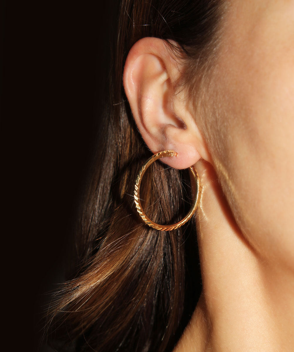 The Heidi Hoops bring big 70s vibes with a minimal profile and a diamond-cut edge. A great all-rounder, they work with every outfit in your closet.