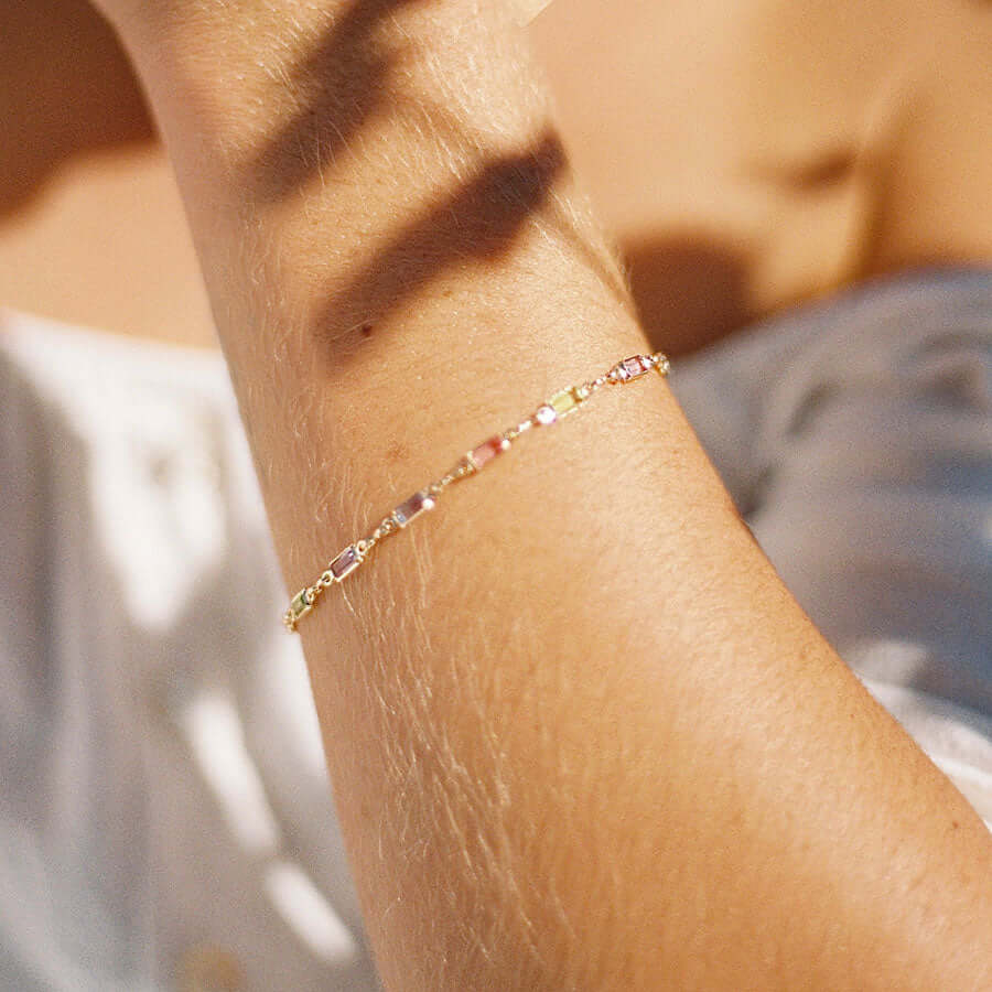 The prettiest peak, the Solstice bracelet will take you your highest highs and lowest lows with pastel gemstones twinkling in the sunlight.