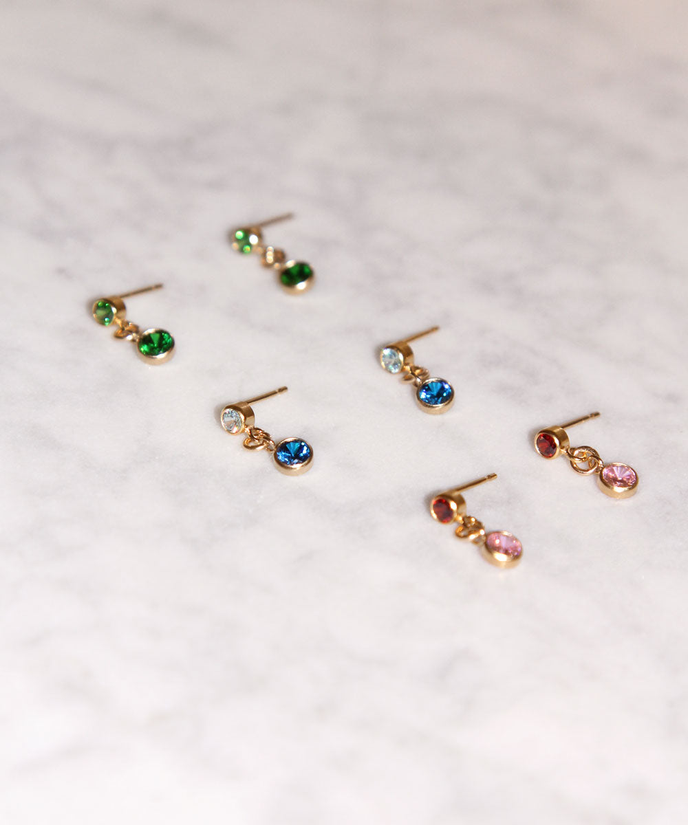 Build a sparkling ear stack with the brightly coloured Jewel Drop Stud Earrings. Crafted from gold filled and embellished with vibrant CZ crystals in three stunning colourways — red & pink, navy & aquamarine, or dazzling emerald green — these beautiful stud earrings promise to brighten any look.