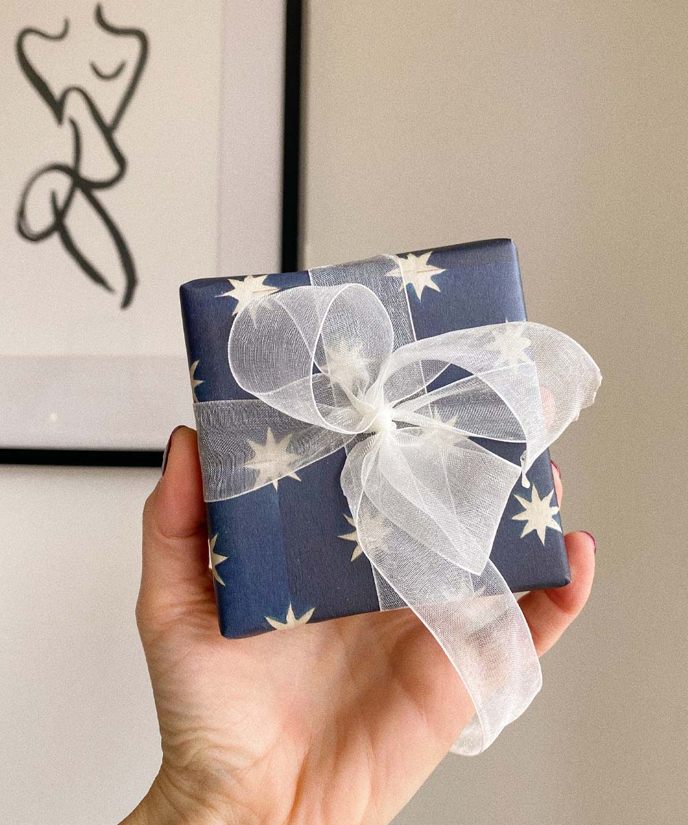 Our Signature Gift Wrap will make any present feel extra special. Its simple, dreamy vibes create an atmosphere of elegance and sophistication, making the gift-giving experience truly unforgettable. Ready to gift upon arrival.