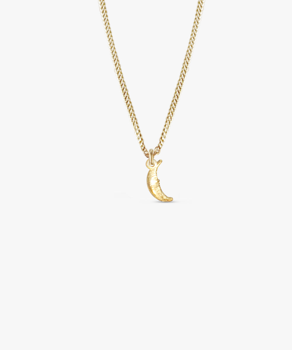 A dreamy little moon face, this sweet necklace brings the moon beams everywhere you go. Our original smiling moon design, this piece is solid (not hollow) and has a smooth back. Handcrafted from 14K gold filled.