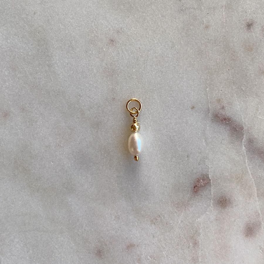 The Mini Rhiannon pearl charm adds a classic touch to your stack.