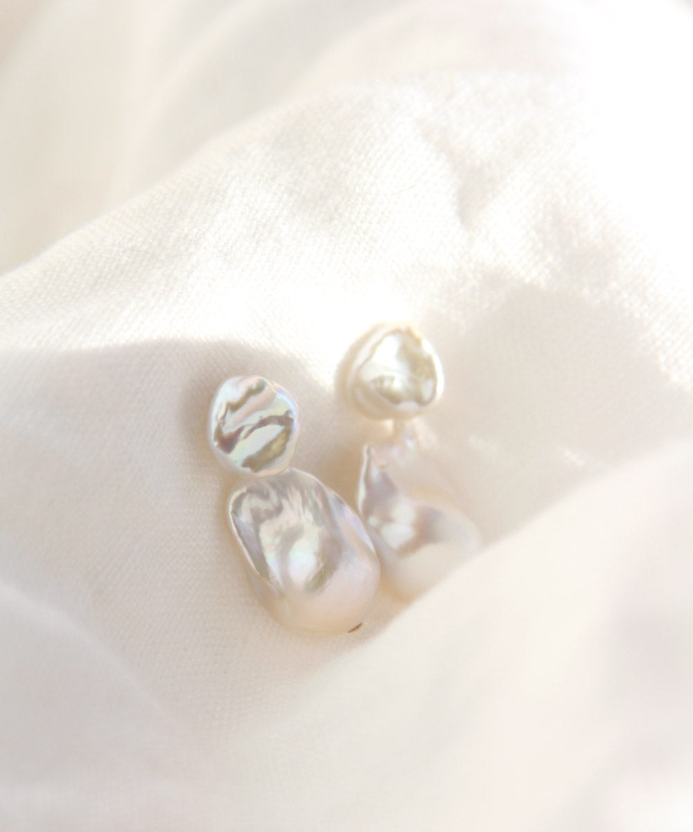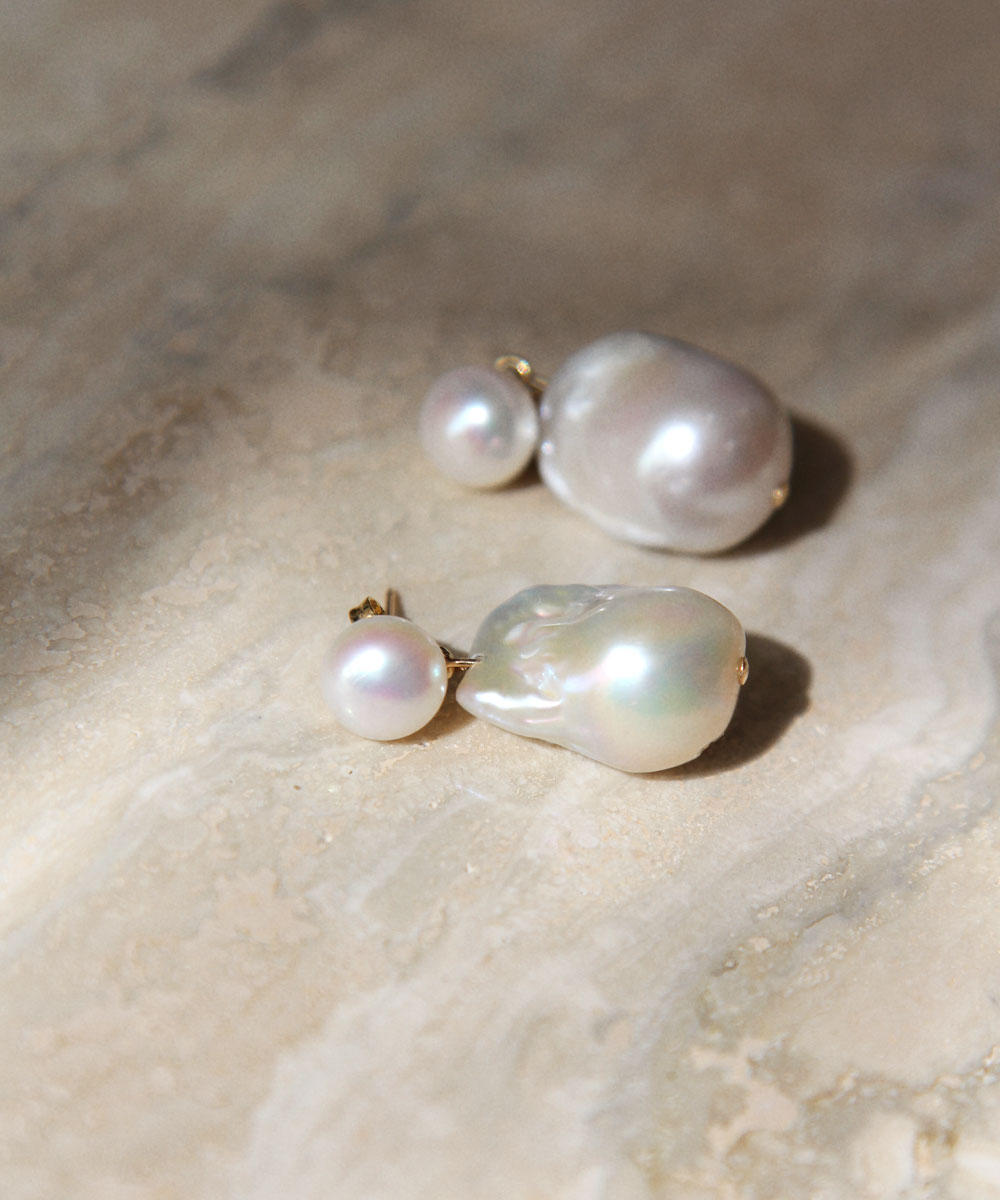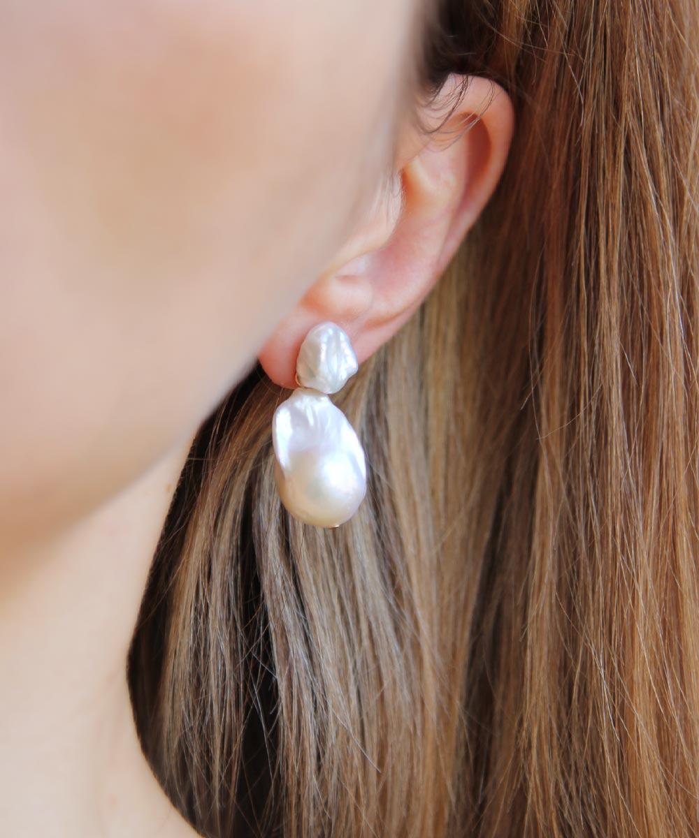 Gorgeous, high lustre irregular freshwater pearl stud earrings with a removable bold AA flame ball baroque pearl. A 2-in-1 design, you can wear the irregular pearl studs separately as a daily reminder of your wedding day.