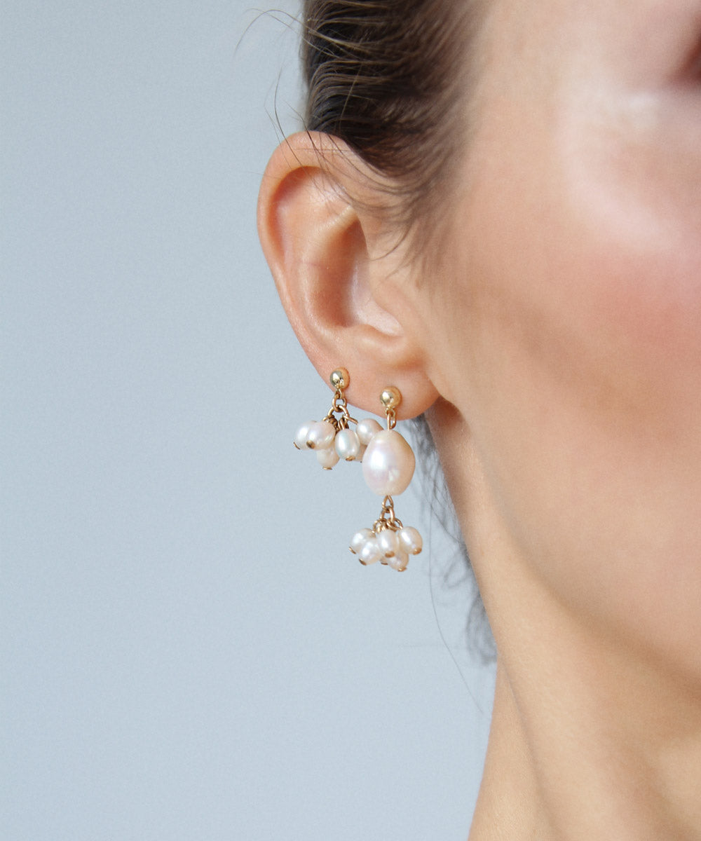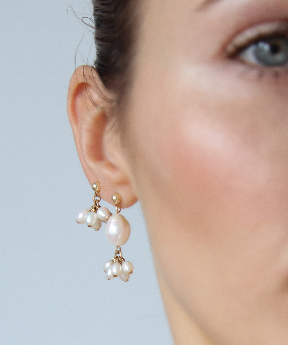 The Fleurette Pearl Earrings are the little sister to the Fleur Earrings, and when worn together create a stunning and unique bridal ear stack. Handcrafted in either gold vermeil or sterling silver, they feature a cluster of gorgeous freshwater pearls to create a romantic floral vibe to the modern bride.