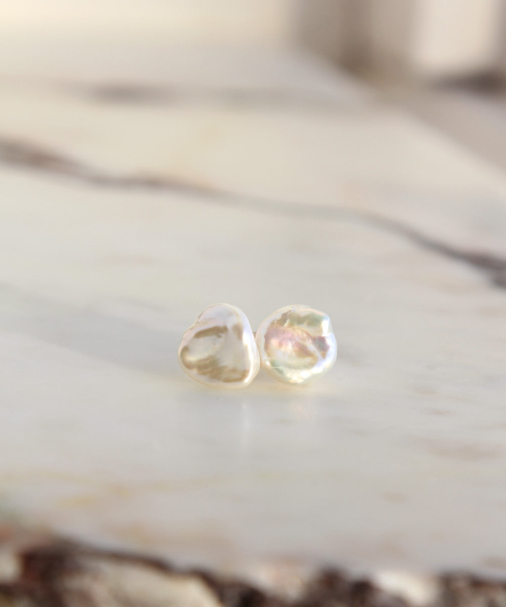 Perfectly Imperfect. Irregular AAA freshwater pearl studs in the perfect size for every day—or wedding day—chic.