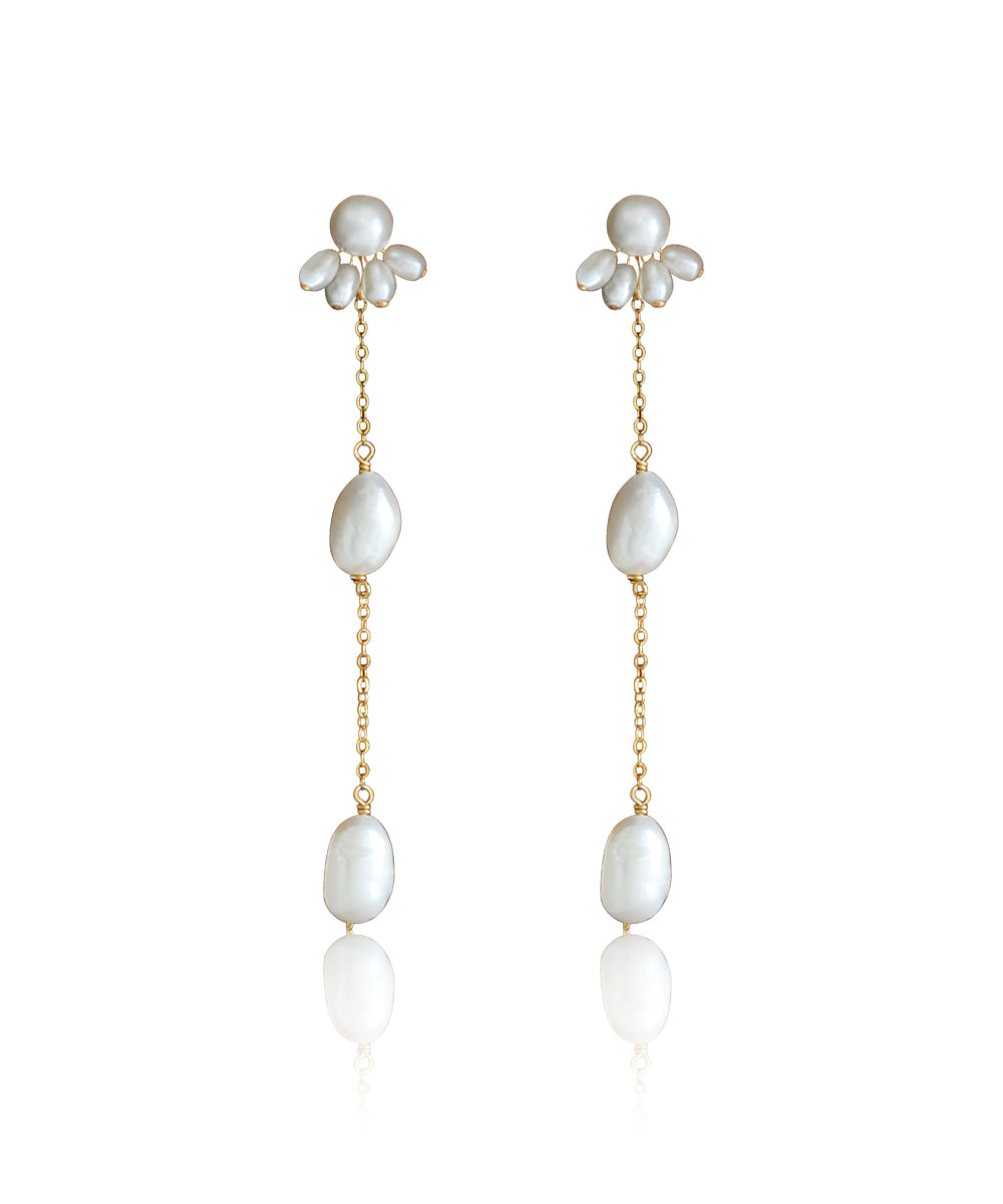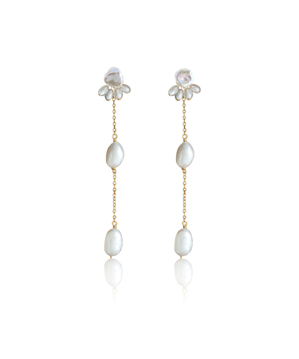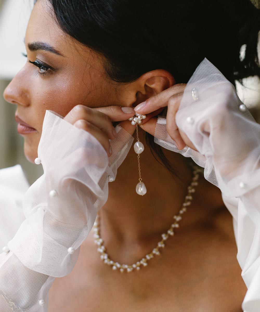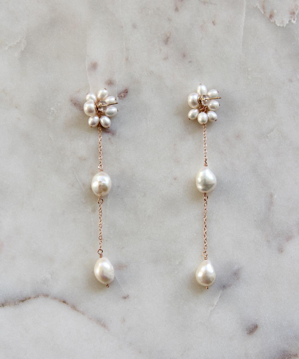 It's your day—make an entrance in the Sabine earrings. Handpicked freshwater pearls, hand crafted just for you. Available in yellow and rose gold filled, and sterling silver.