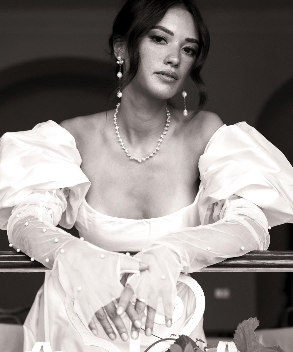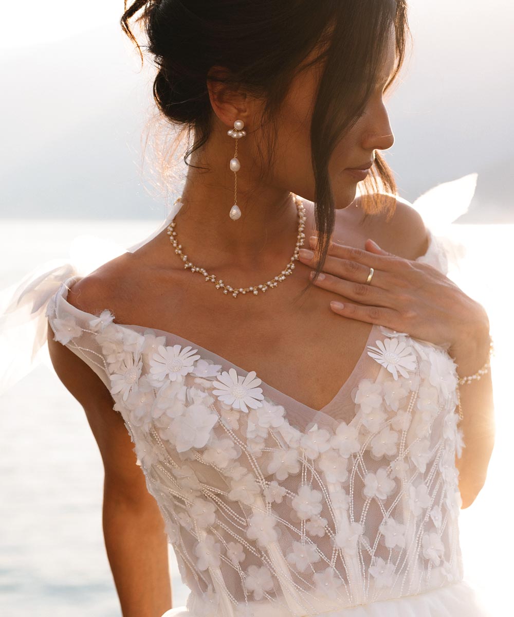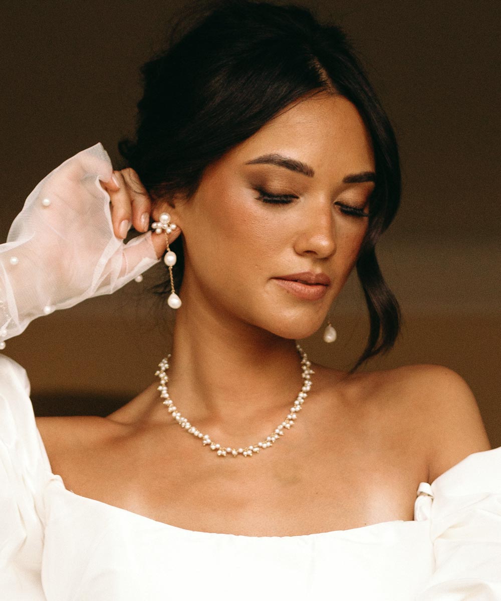 "I wore the Sabine for my wedding and they were the perfect bridal earrings to pair with my off-shoulder dress, updo and Medusa Snake necklace (also from MDF!). I felt so beautiful and feminine and got loads of compliments! I love that I'll be able to wear the studs as an everyday piece and it'll remind me of our special day."