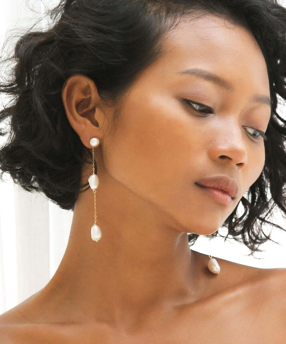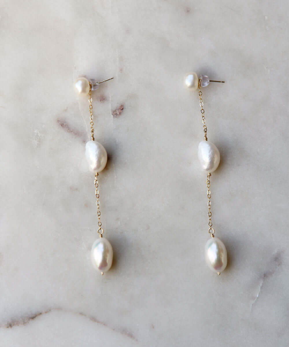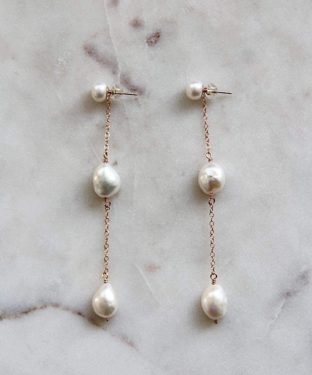 It's your day—make an entrance in the Sabine earrings. Handpicked freshwater pearls, hand crafted just for you. Available in yellow and rose gold filled, and sterling silver.