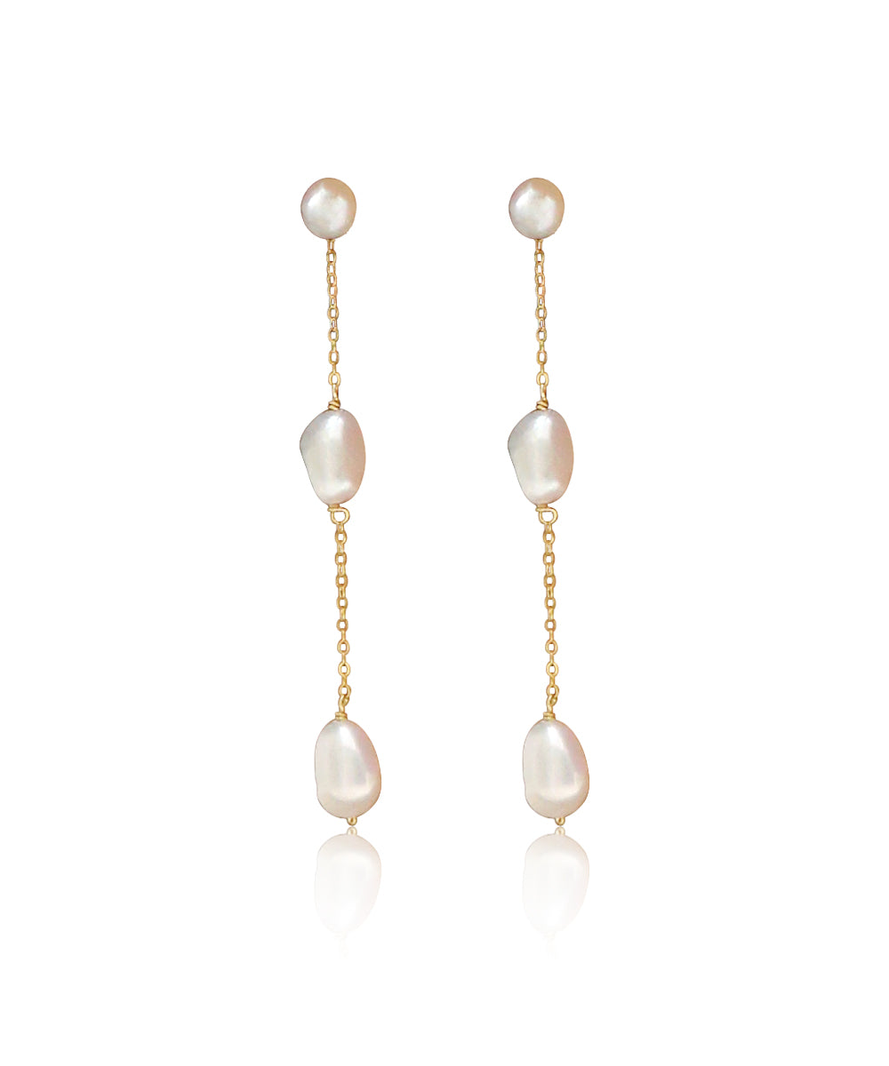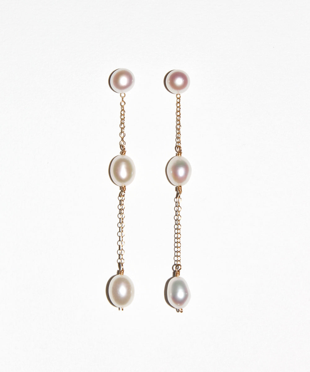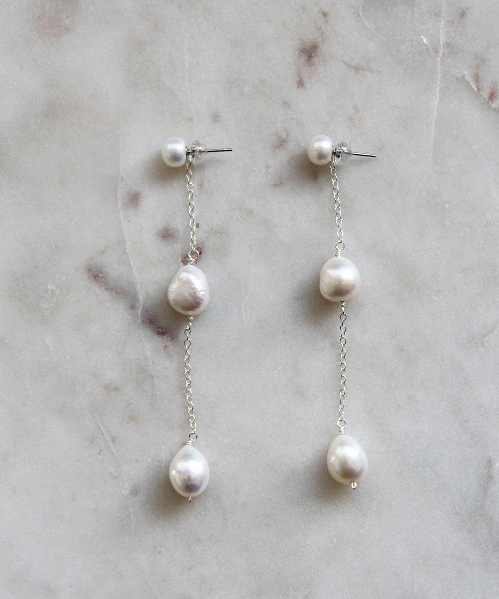 It's your day—make an entrance in the Sabine earrings. Handpicked freshwater pearls, hand crafted just for you. Available in yellow and rose gold filled, and sterling silver.
