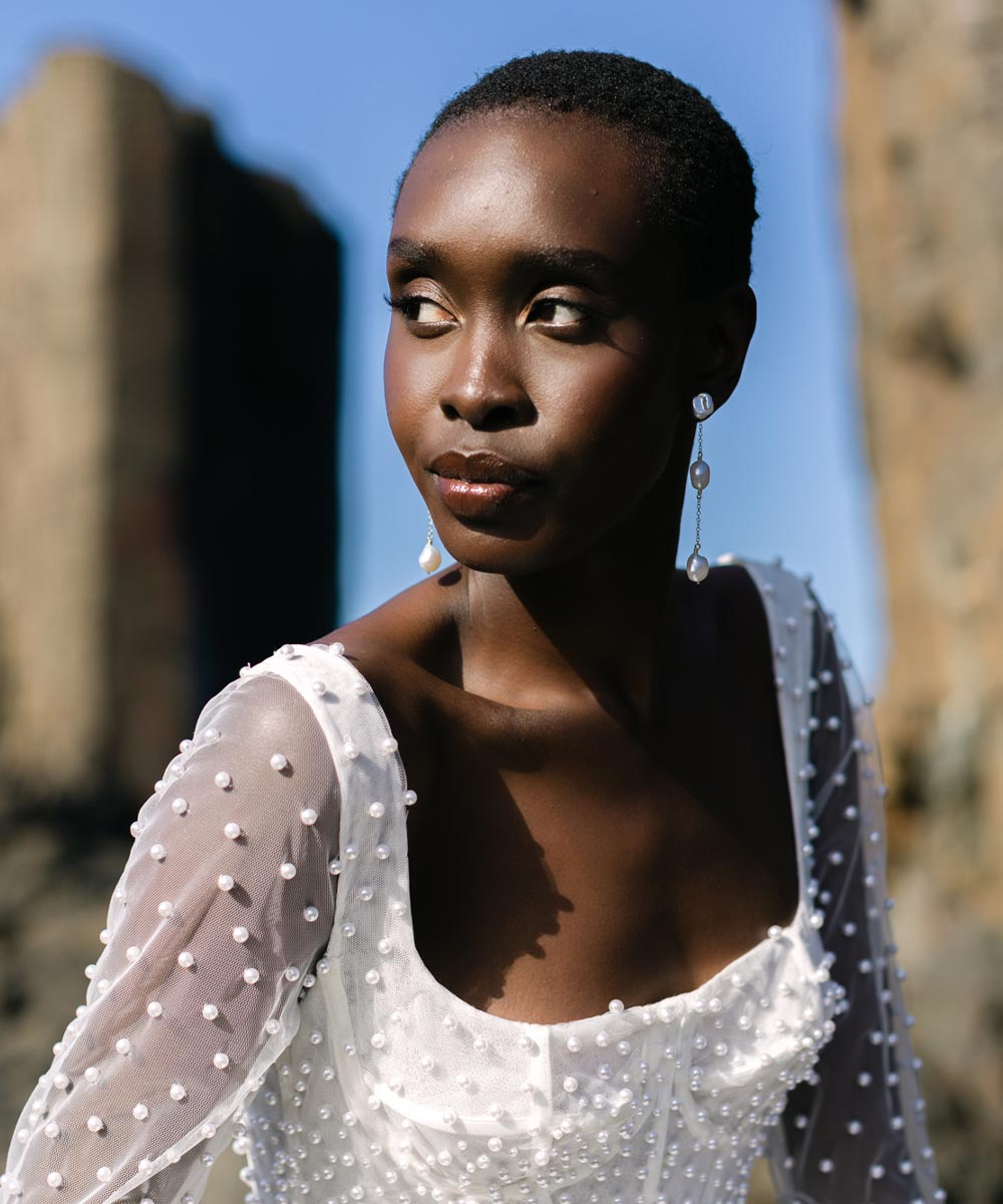 The pearl drop is removable, so you can wear them two ways: as minimal pearl stud earrings or as a statement.