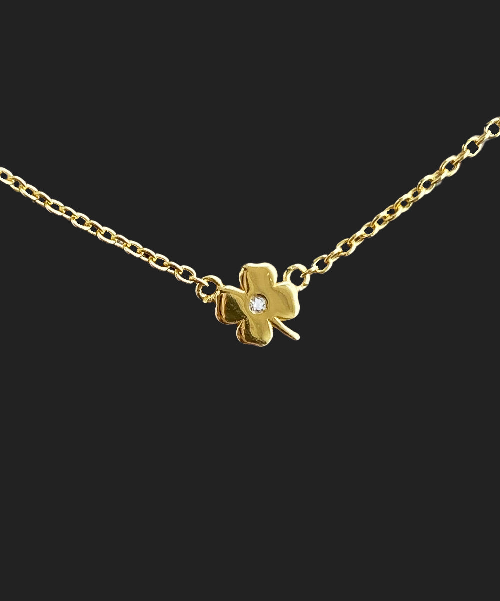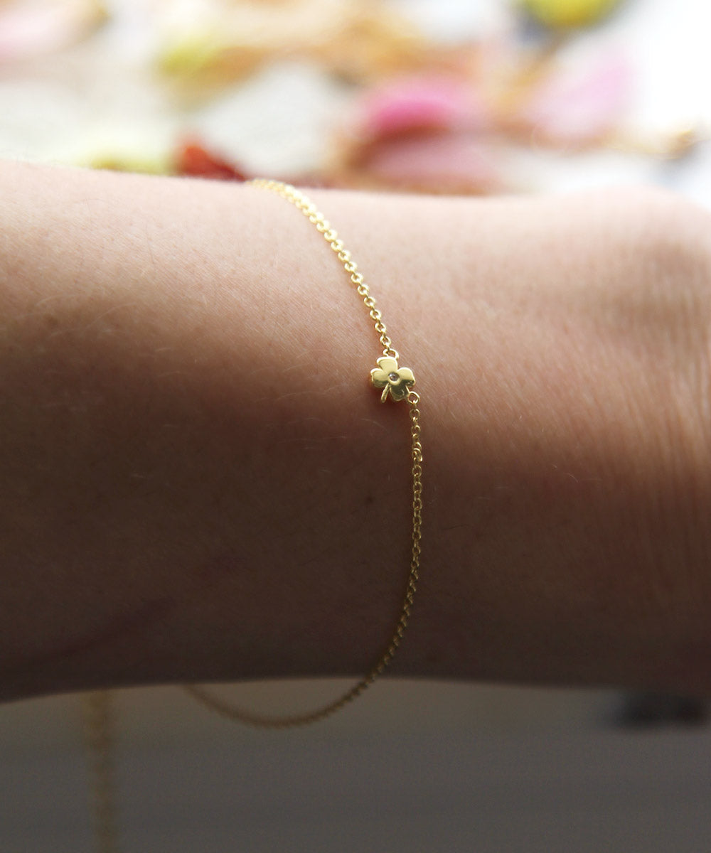 For days when you need a little extra luck, reach for our iconic four leaf clover bracelet. Designed in-house, it features a petite four leaf clover with a tiny sparkling CZ stone.