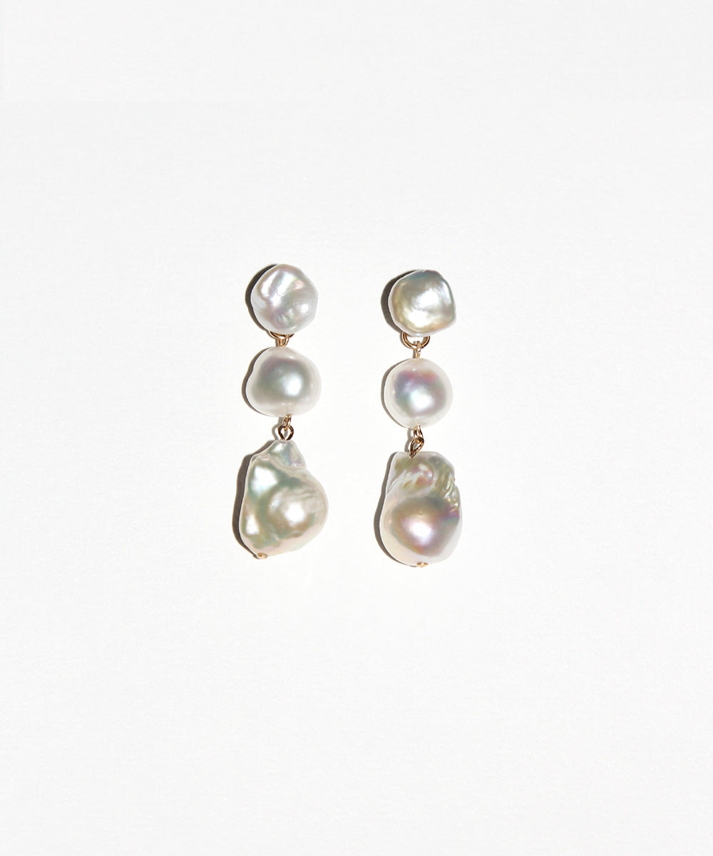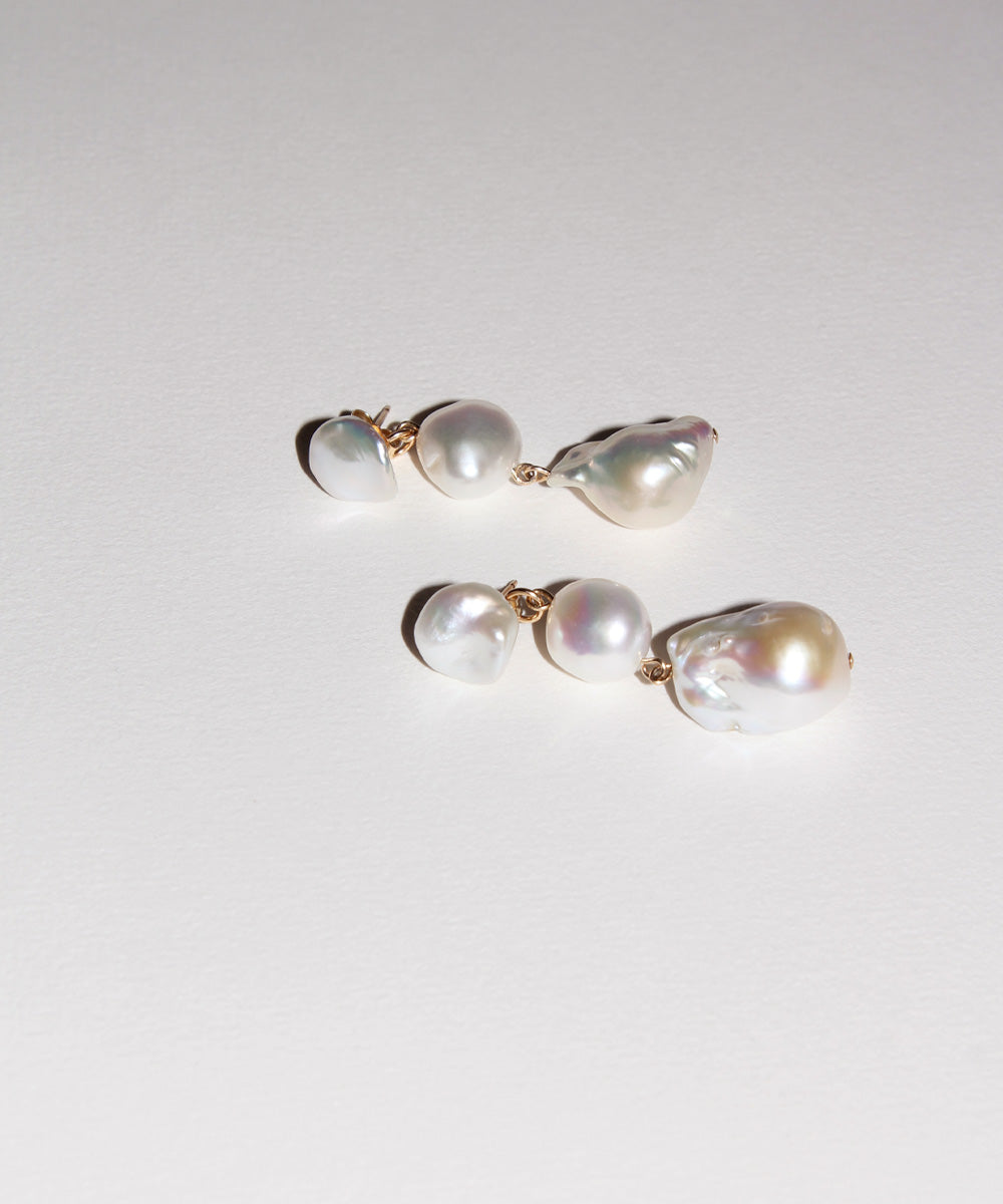 We've made 2-in-1 earrings with an innovative difference: the drops are attached to the earring back, so the pearl sits flush against your lobe without bulk. It makes them lightweight, modern, and effortlessly cool.