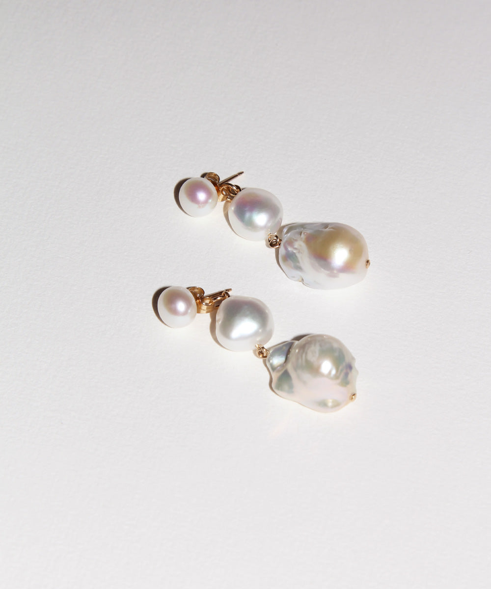 We've made 2-in-1 earrings with an innovative difference: the drops are attached to the earring back, so the pearl sits flush against your lobe without bulk. It makes them lightweight, modern, and effortlessly cool.